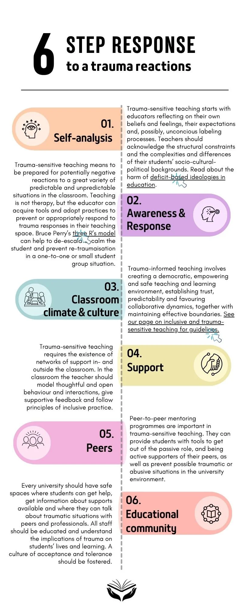Below, we identify 6 steps - or levels - which educators and the wider University community should consider in responding to and preventing trauma.