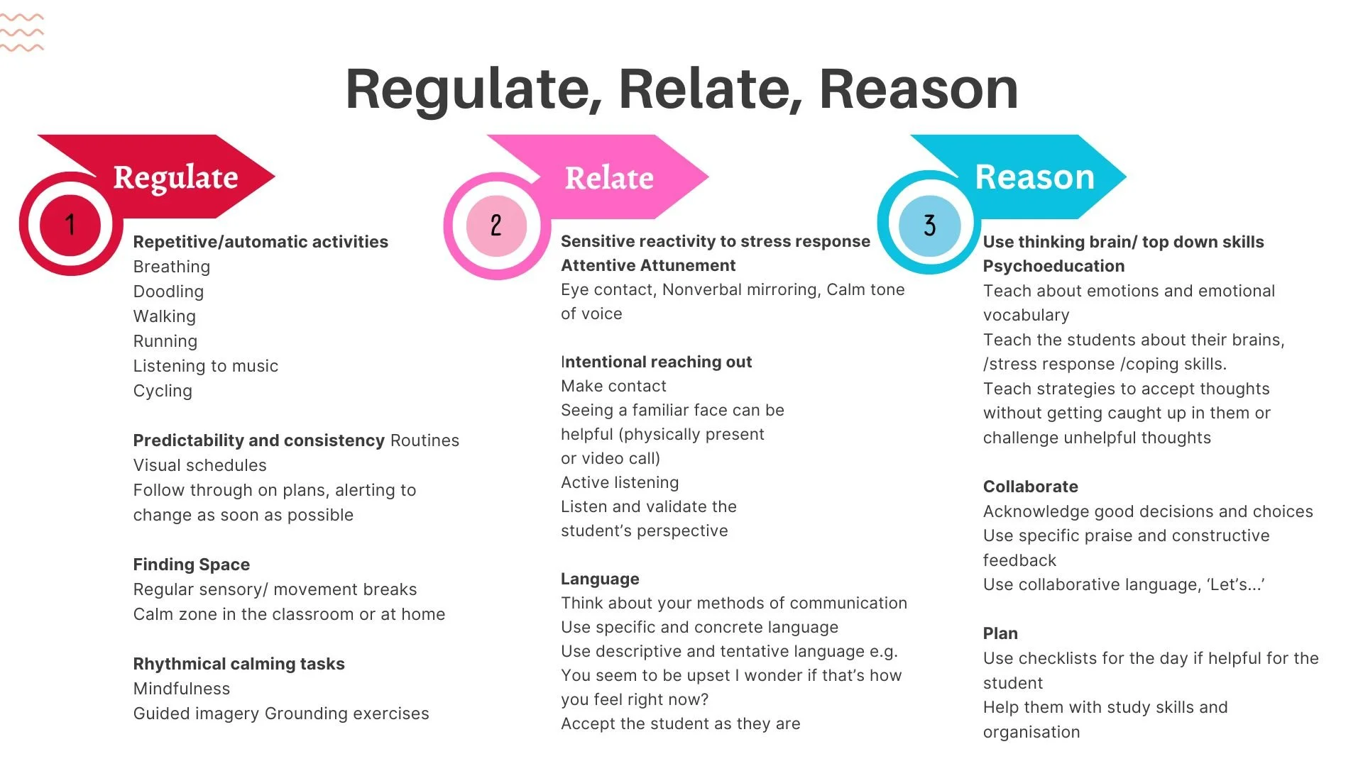 The 3 R's (Bruce Perry): Regulate, Relate, Reason